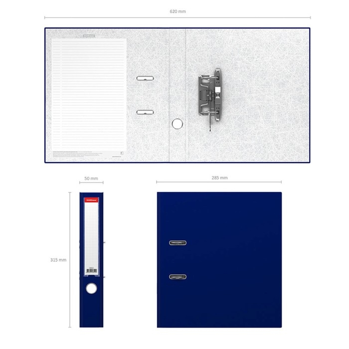Папка-регистратор А4, 50 мм, ErichKrause Granite, собранная, пластиковый карман, синяя, вместимость 350 листов