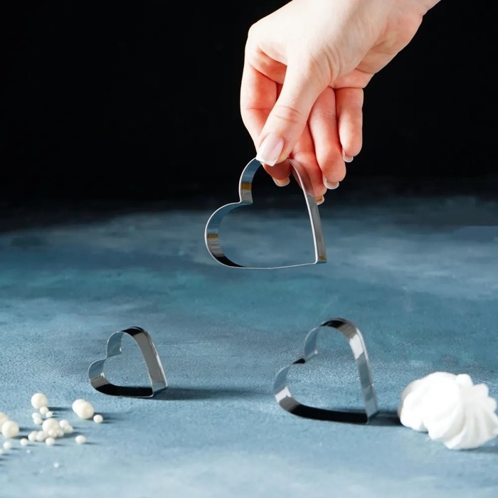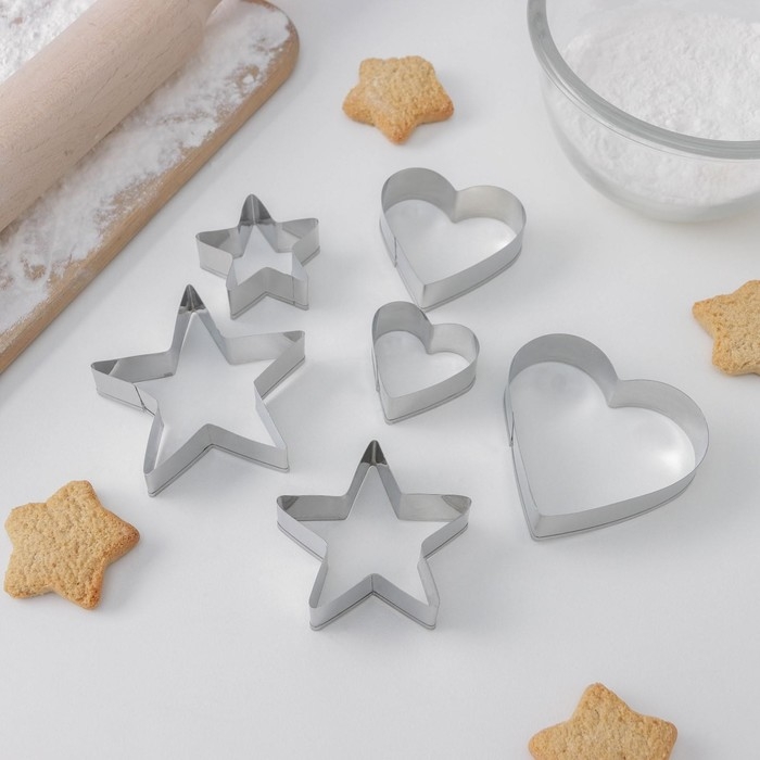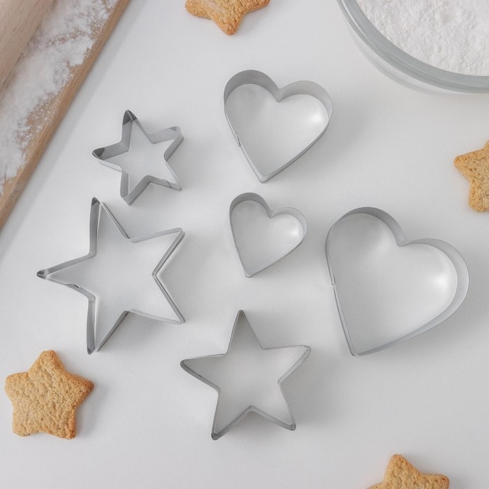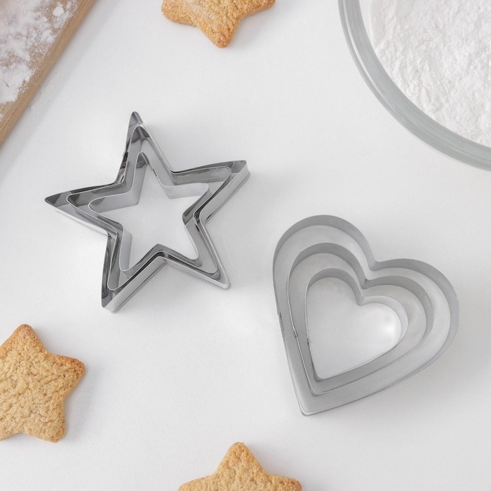 Набор форм для печенья Доляна «Сердце, звёздочка», 6 предметов, 7×13×1,5 см, цвет серебристый