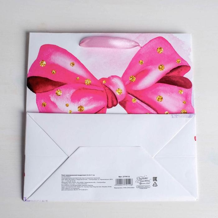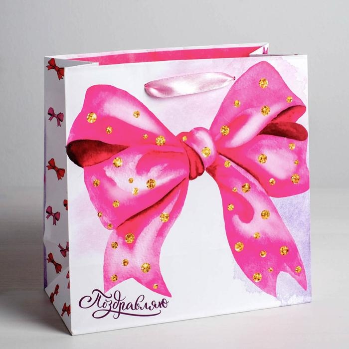 Пакет подарочный ламинированный квадратный, упаковка, «Поздравляю!», 22 х 22 х 11 см