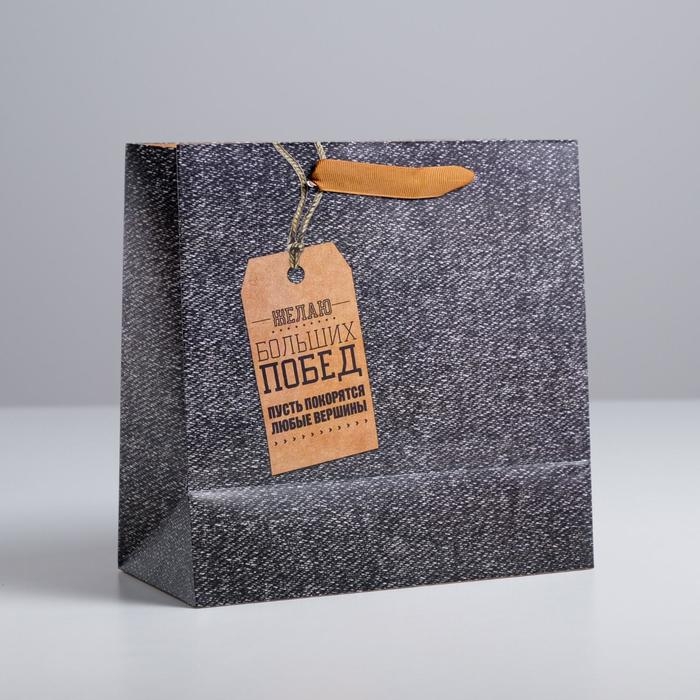 Пакет подарочный ламинированный квадратный, упаковка, «Больших побед», 22 х 22 х 11 см