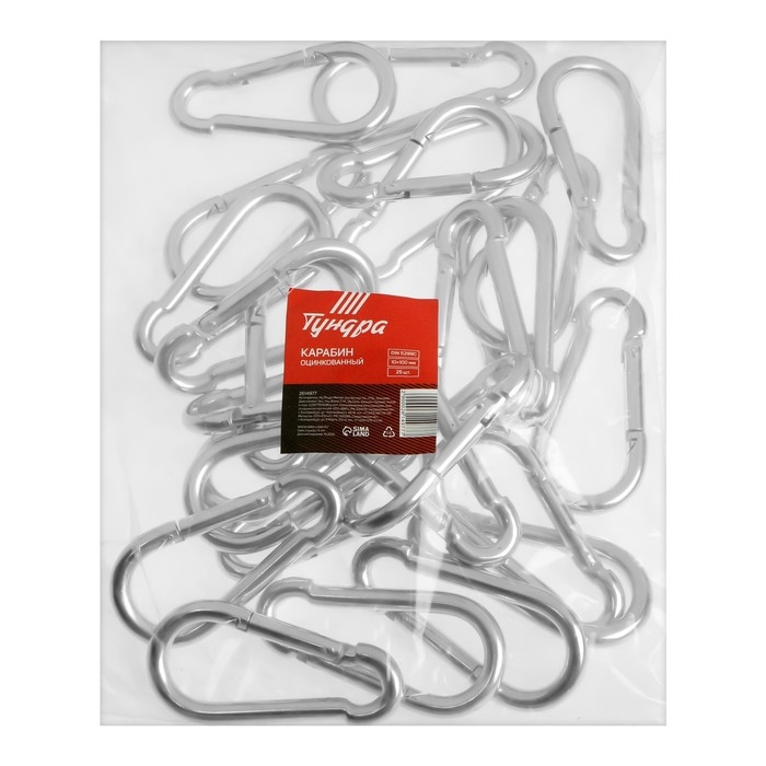 Карабин ТУНДРА krep изготовлен из высококачественного металла и оцинкован, что защищает его от коррозии.