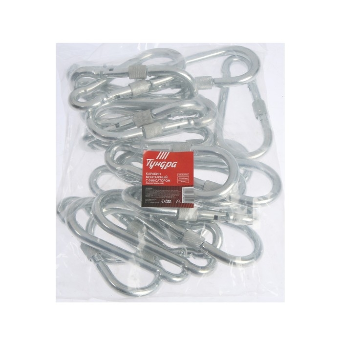 Карабин монтажный с фиксатором ТУНДРА krep, DIN5299D, 10х100 мм, оцинкованный, 1 шт.