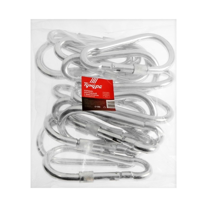 Карабин монтажный с фиксатором ТУНДРА krep, DIN5299D, 13х160 мм, оцинкованный