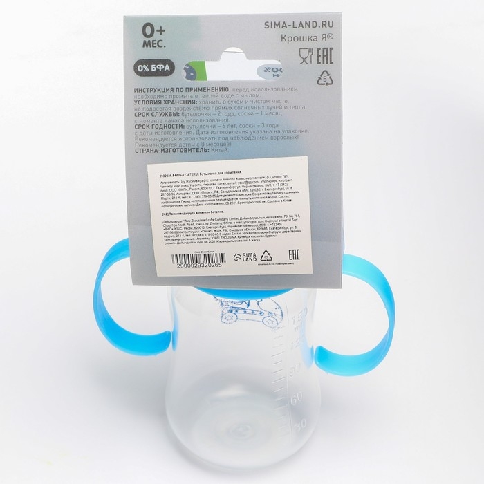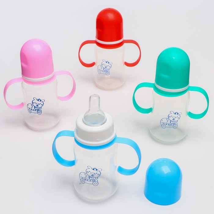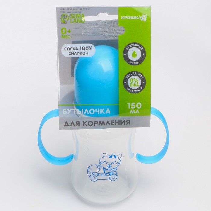 Бутылочка для кормления, классическое горло, с ручками, 150 мл., от 0 мес., цвета МИКС