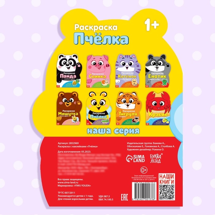 Раскраска с наклейками «Пчёлка», 12 стр.