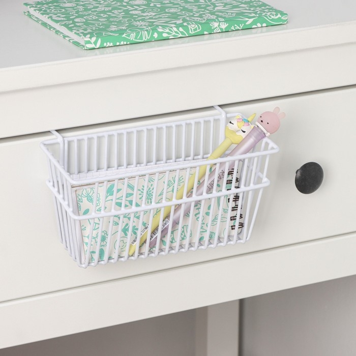 Корзина сетчатая навесная на полку Доляна, 35×23×12 см, цвет белый