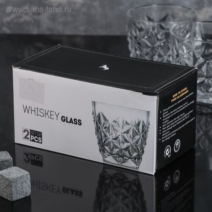 Набор стаканов стеклянных для виски «Рокс», 2 предмета: 350 мл, 9,6×9 см