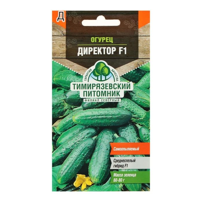 Семена Огурец Директор F1. Гибрид раннеспелый, партенокарпический. В одном узле формируется по 2-3 плода. Плоды цилиндрические, крупнобугорчатые, тёмно-зелёные, длиной 9-10,5 см, диаметром 3-3,5 см, массой 65-80 г, без горечи, очень аппетитные. Вкусовые качества и товарность отличные.
