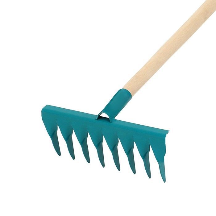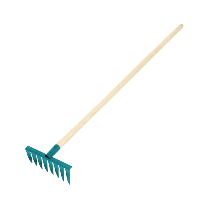 Грабли прямые, витой зуб, 8 зубцов, металл, деревянный черенок, МИКС