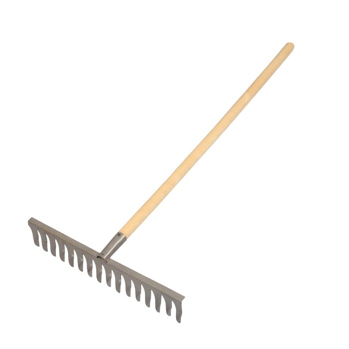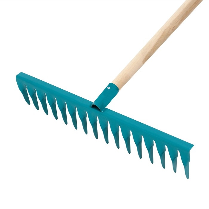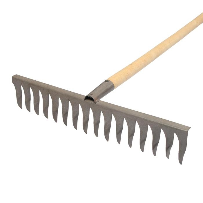 Грабли прямые, повёрнутый зубец, 16 зубцов, металл, деревянный черенок, МИКС