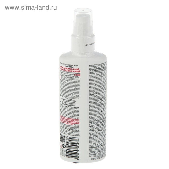 Способ применения: одежду и другие изделия из ткани обрабатывать на открытом воздухе (вне помещений). Располагать одежду и направлять струю средства по направлению ветра. Средство распылять на изделия с расстояния 20-25 см от них, держа упаковку в вытянутой руке. Особенно тщательно обработать брюки вокруг щиколоток, голеней, коленей, бедер и места возможного проникновения клещей и блох к телу. Одежду просушить и надевать на нижнее белье.