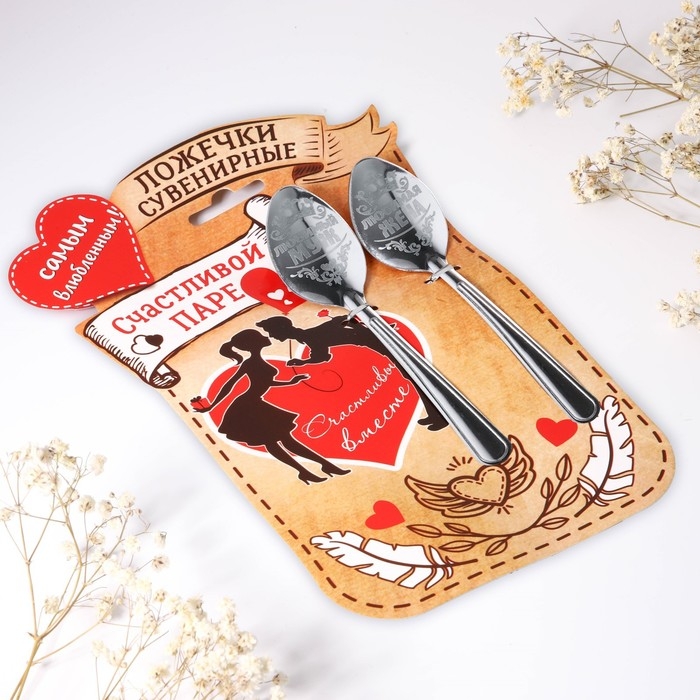 Ложки с гравировкой, набор 2 шт «Счастливой паре», 15,5 х 25,5 см.