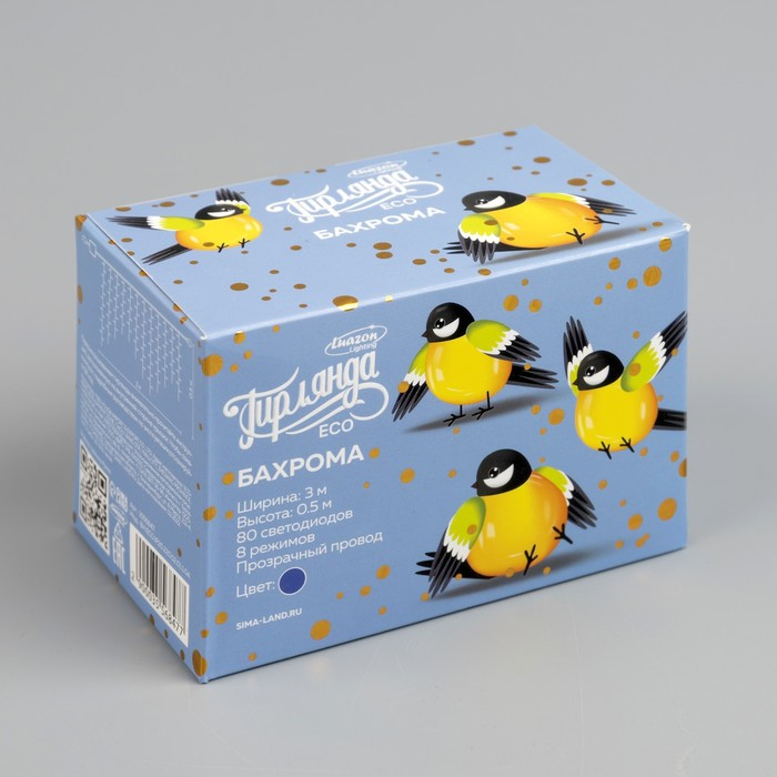 Гирлянда «Бахрома» 3 × 0.5 м, IP20, прозрачная нить, 80 LED, свечение синее, 8 режимов, 220 В