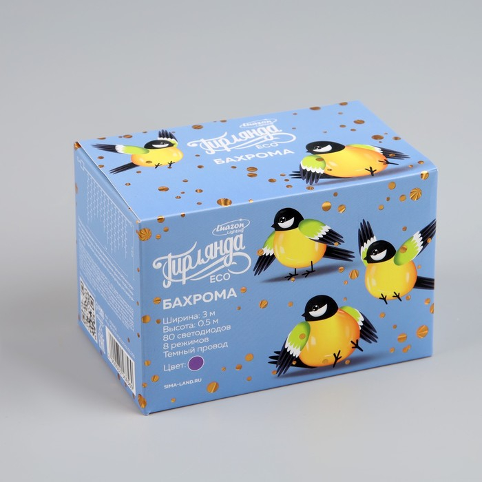 Гирлянда «Бахрома» 3 × 0.5 м, IP20, тёмная нить, 80 LED, свечение фиолетовое, 8 режимов, 220 В
