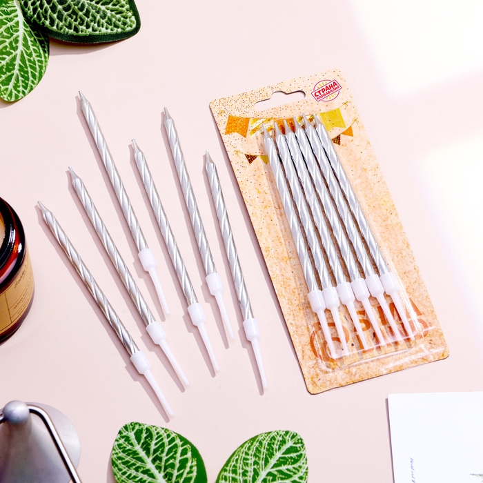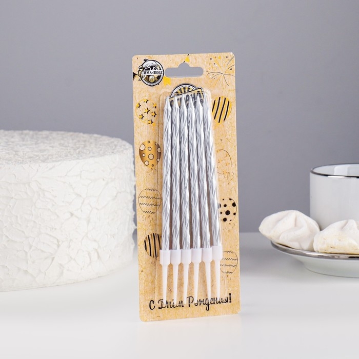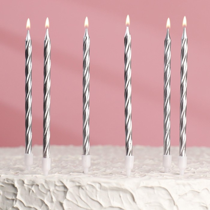 Набор свечи в торт "Спираль", 200шт, 5 см, серебряный металлик
