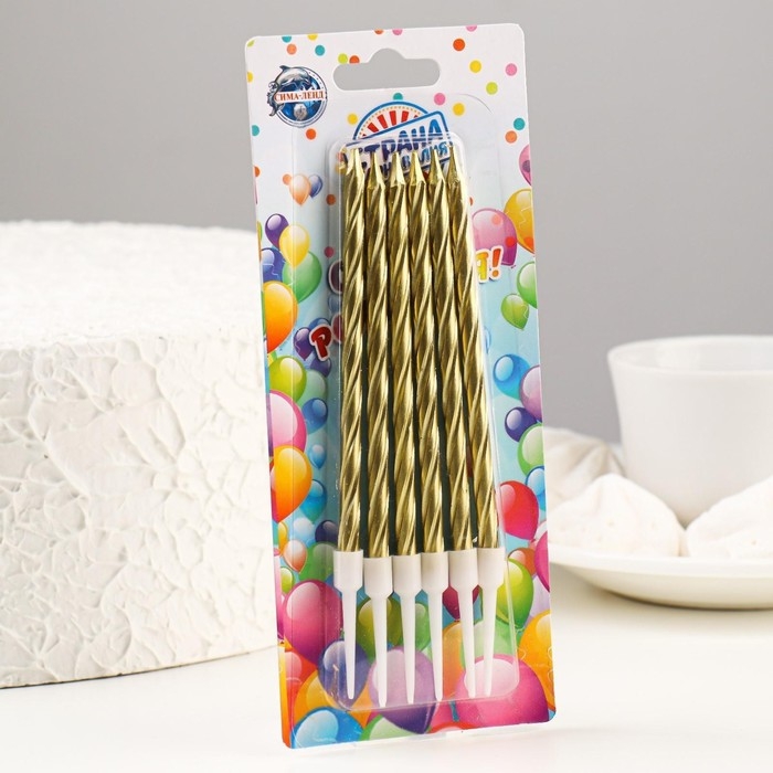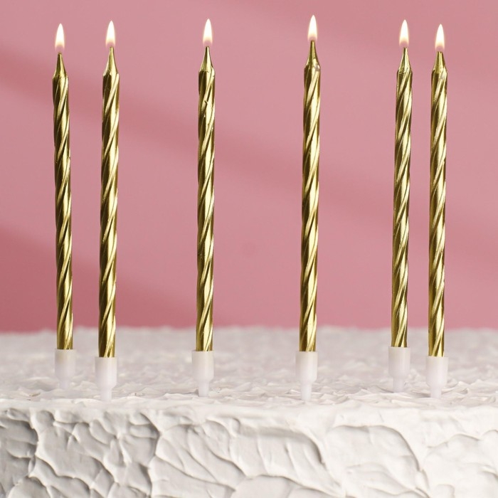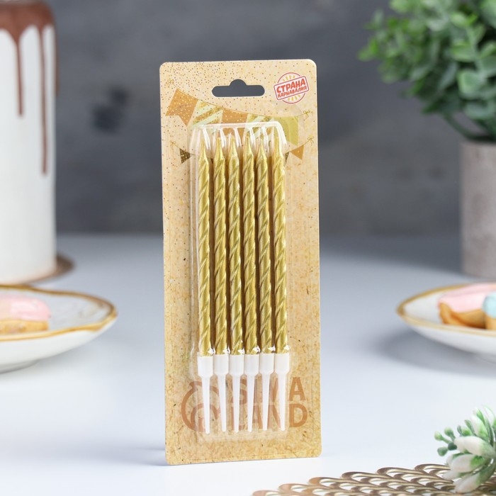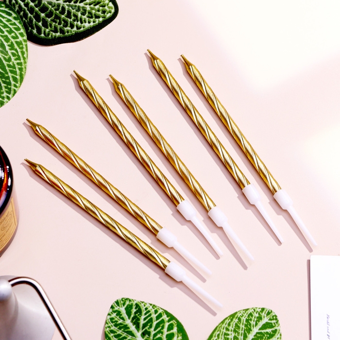 Свечи в торт "Ройс", 6 шт, высокие, 13 см, золотой металлик