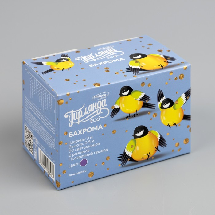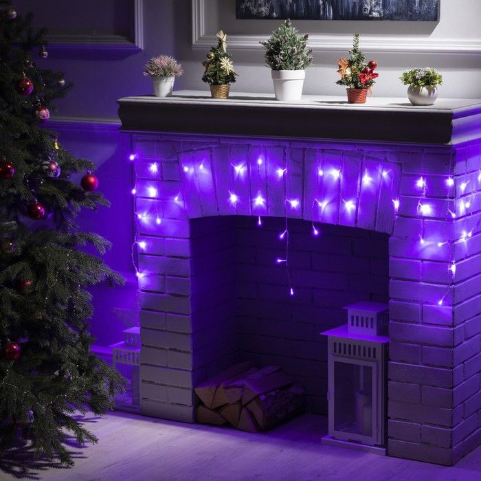 Гирлянда «Бахрома» 3 × 0.5 м, IP20, прозрачная нить, 80 LED, свечение фиолетовое, 8 режимов, 220 В