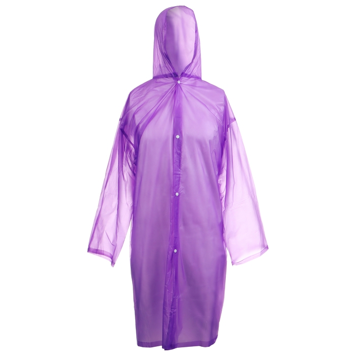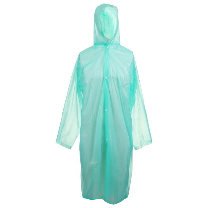 Дождевик защищает одежду от влаги, спасает от косых ливней. Освобождает руки - не нужно брать с собой зонтик. В сложенном состоянии дождевик занимает мало места, легко помещается в рюкзаке или сумке. Застёгивается на кнопки.
