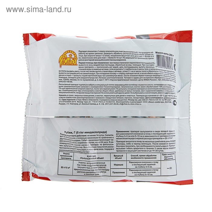 Средство от медведки Рубеж гранулы, 200 г