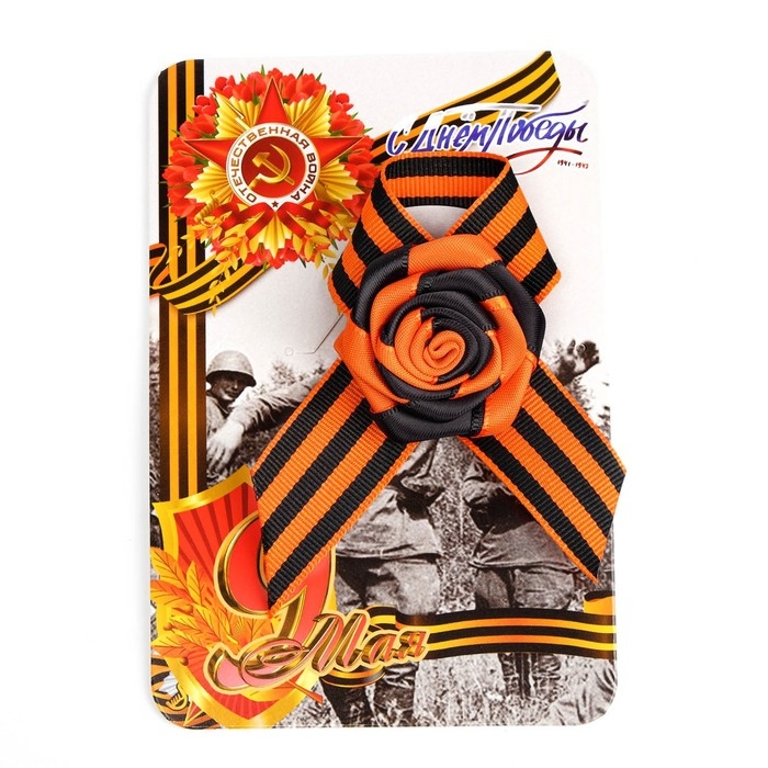 Брошь - георгиевская лента с цветком "9 мая - Орден Победы"