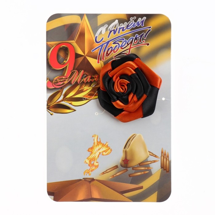 Брошь - цветок из георгиевской ленты "9 мая - Вечный огонь"