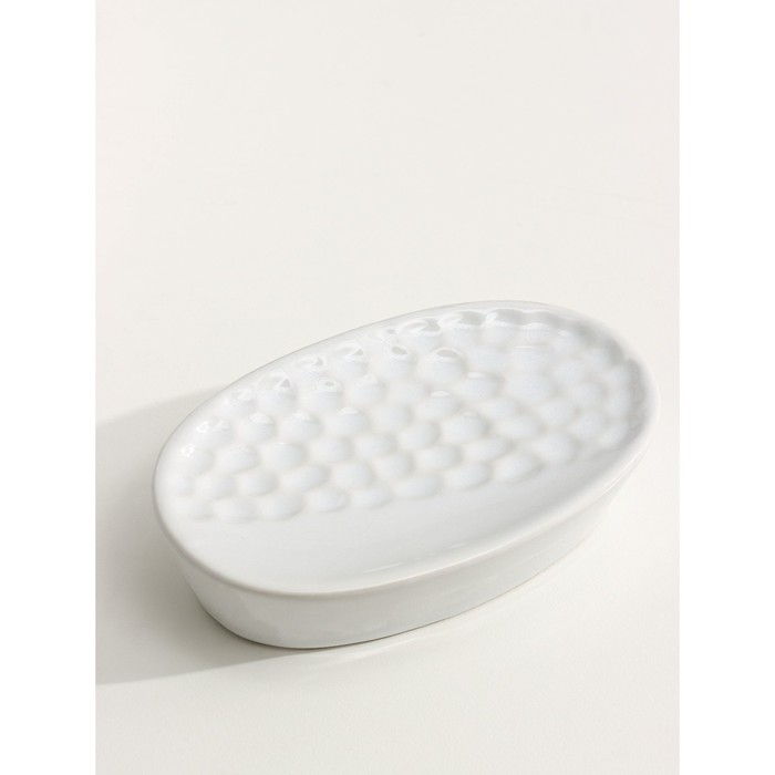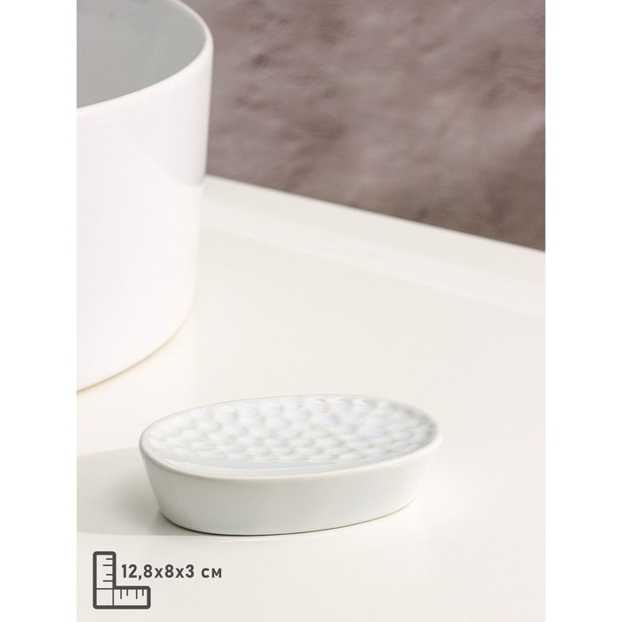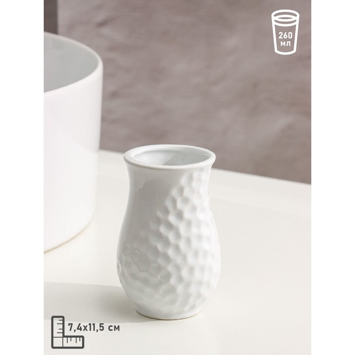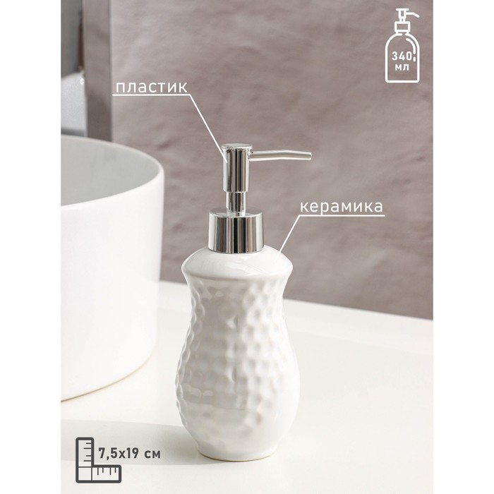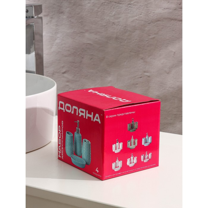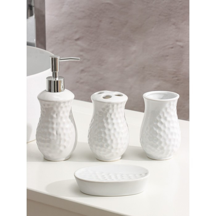 Набор аксессуаров для ванной комнаты Доляна «Рельеф», 4 предмета (дозатор 340 мл, мыльница, два стакана 300 мл) , цвет белый