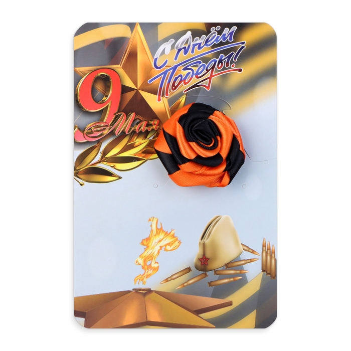 Брошь - цветок из георгиевской ленты "9 мая - Вечный огонь"