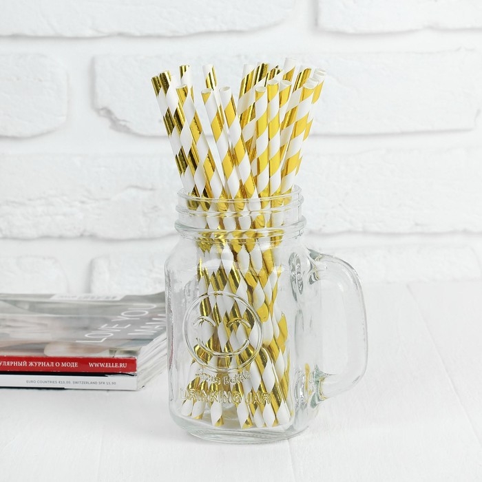 Трубочка для коктейля «Полоска», набор 12 шт., цвет золотой