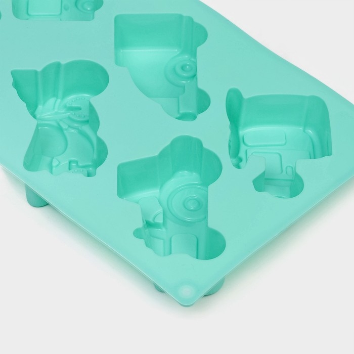 Форма для выпечки Доляна «Транспорт», силикон, 30×17,5 см, 6 ячеек (9×5,5×3,5 см), цвет мятный