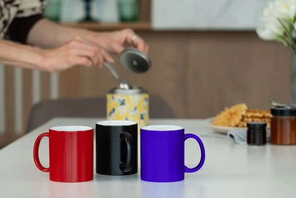 Кружка «Хамелеон» обладает интересным эффектом: стоит налить горячую воду, и ее цвет поменяется на белый.