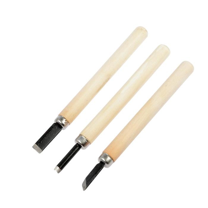 Набор резцов по дереву ТУНДРА, деревянная рукоятка, 3 шт.