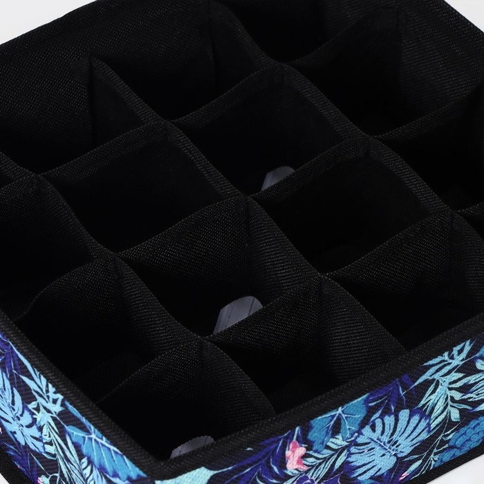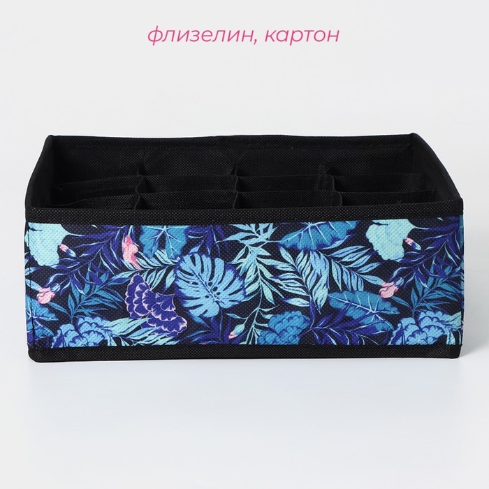 Органайзер для хранения белья Доляна «Тропики», 12 ячеек, 27×20×10 см, цвет синий