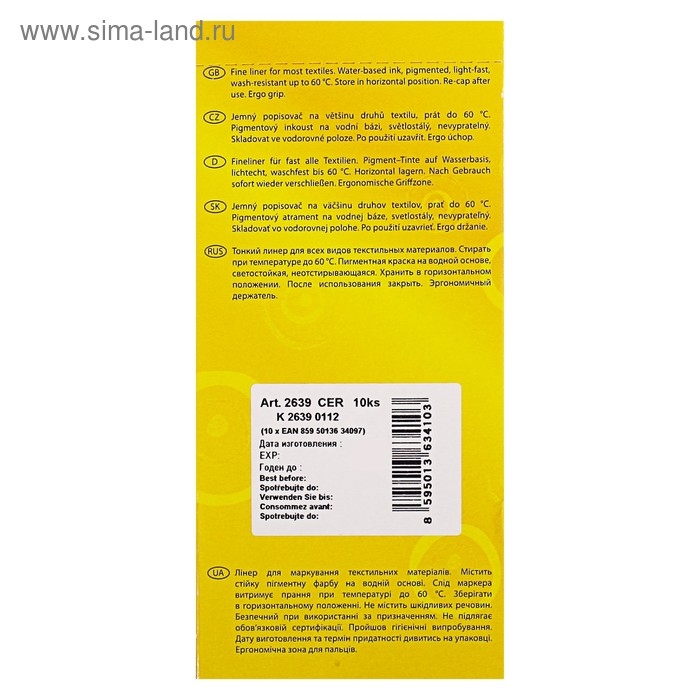 Тонкий линер для всех видов текстильных материалов. Стирать при температуре до 60 градусов. Пигментная краска на водной основе, светостойкая, неотстирывающаяся.