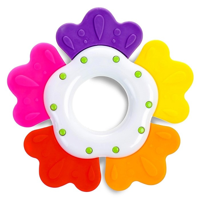 Одной из особенностей этой игрушки является её рельефный материал, который идеально подходит для массажа дёсен, воспаленных у детей в этот период. «Лепестки» по всей окружности погремушки мягко массируют десны малыша, снимая зуд и неприятные ощущения.