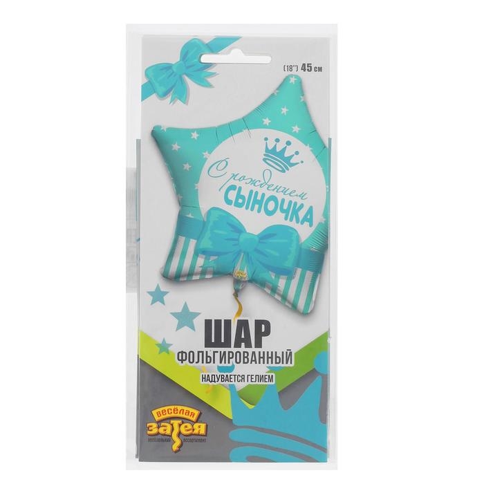 Шар фольгированный 18" «С рождением сыночка», звёзды