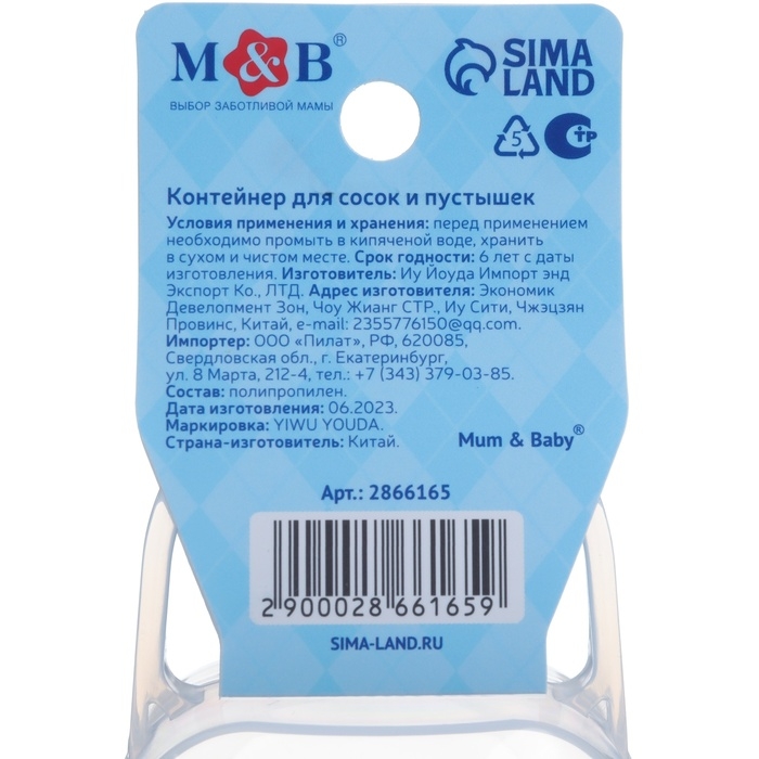 Контейнер для хранения и стерилизации детских сосок и пустышек «Любимый сыночек»