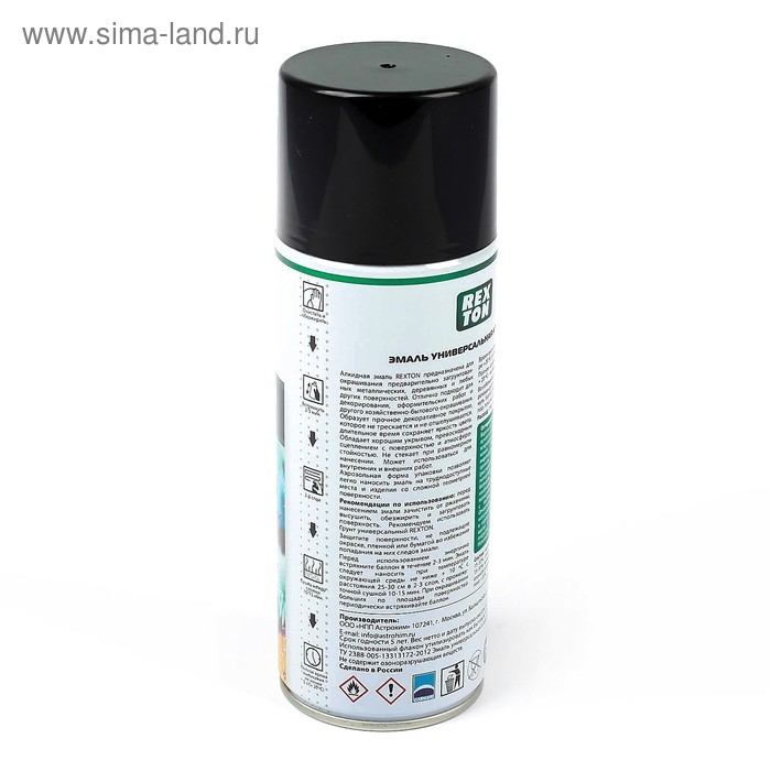 Эмаль алкидная универсальная REXTON, черная глянцевая, аэрозоль, 520 мл