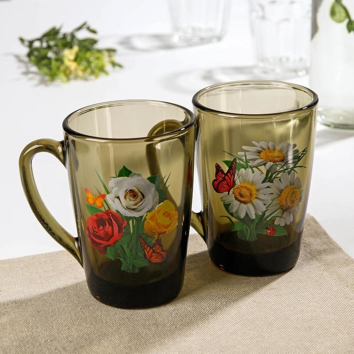 Кружка стеклянная «Букеты», 300 мл, цвет МИКС