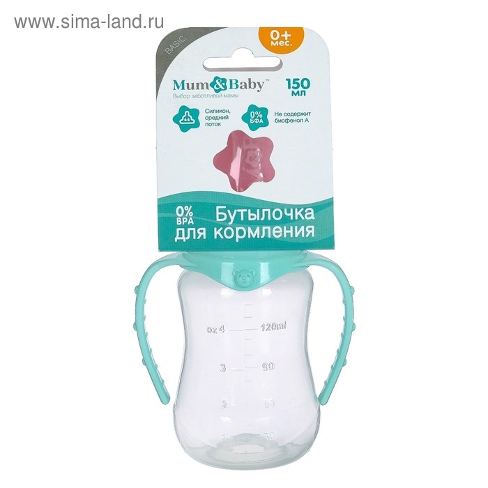 Бутылочка для кормления, классическое горло, приталенная, с ручками, 150 мл., от 0 мес., цвет МИКС