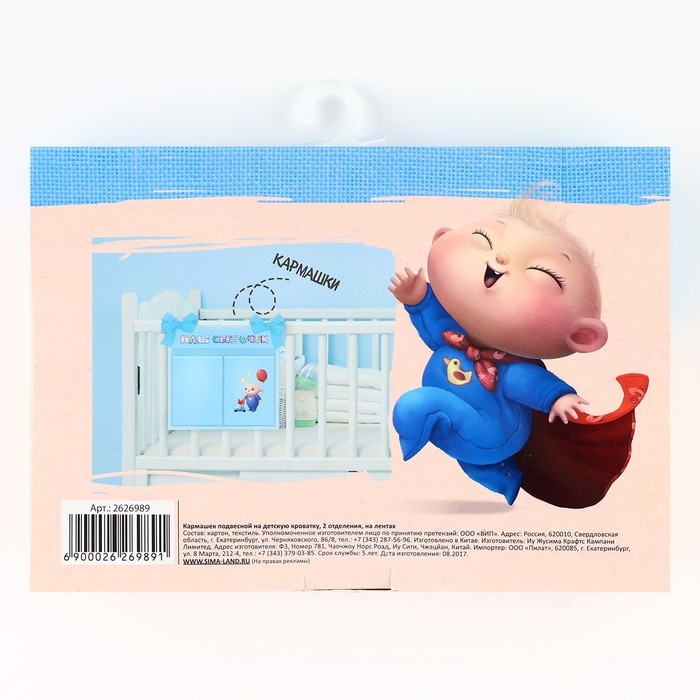 Органайзер для хранения вещей на детскую кроватку «Наш сыночек», 2 отделения