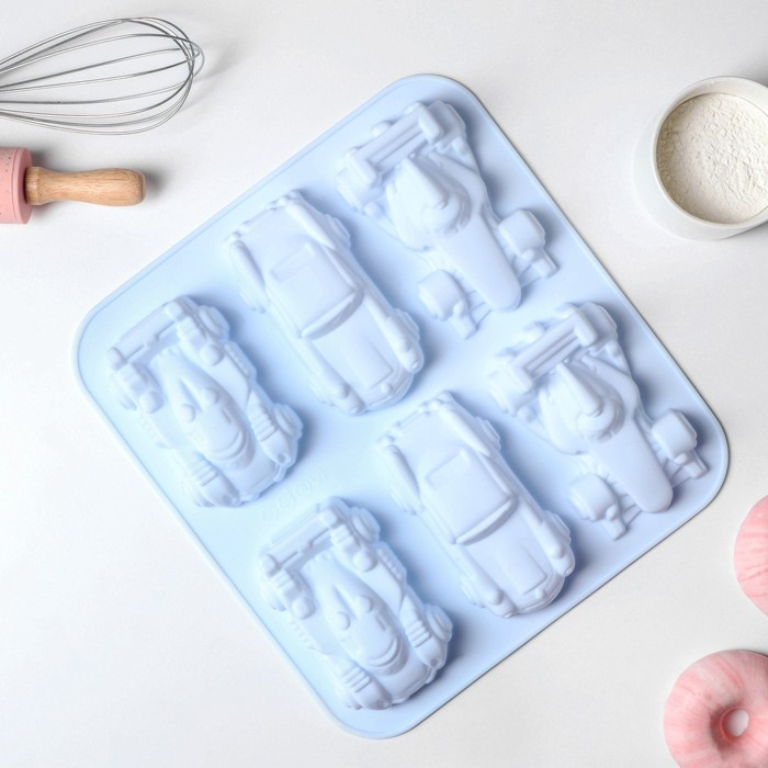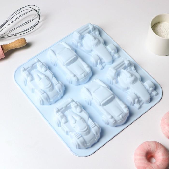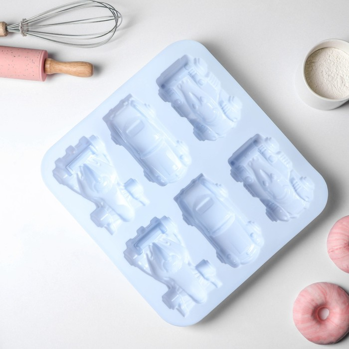 Форма для выпечки Доляна «Гонки», силикон, 29,5×27 см, 6 ячеек (11,5×6,5 см), цвет МИКС