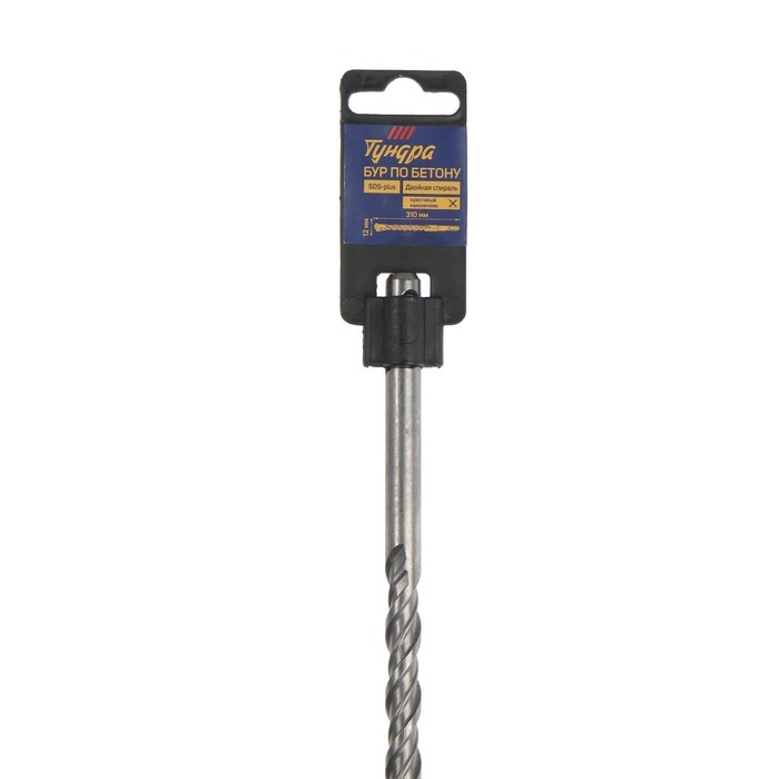 Бур по бетону ТУНДРА, крестовый наконечник, двойная спираль, SDS-plus, 12 х 310 мм