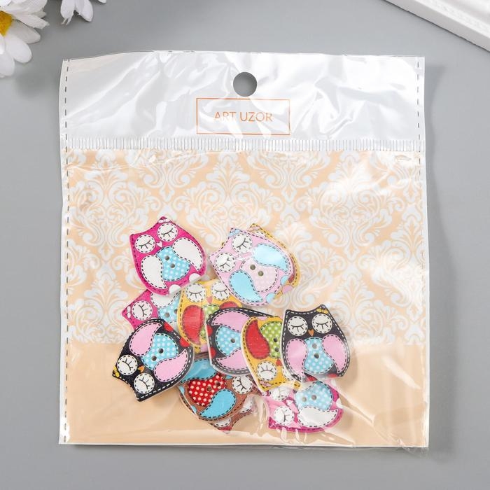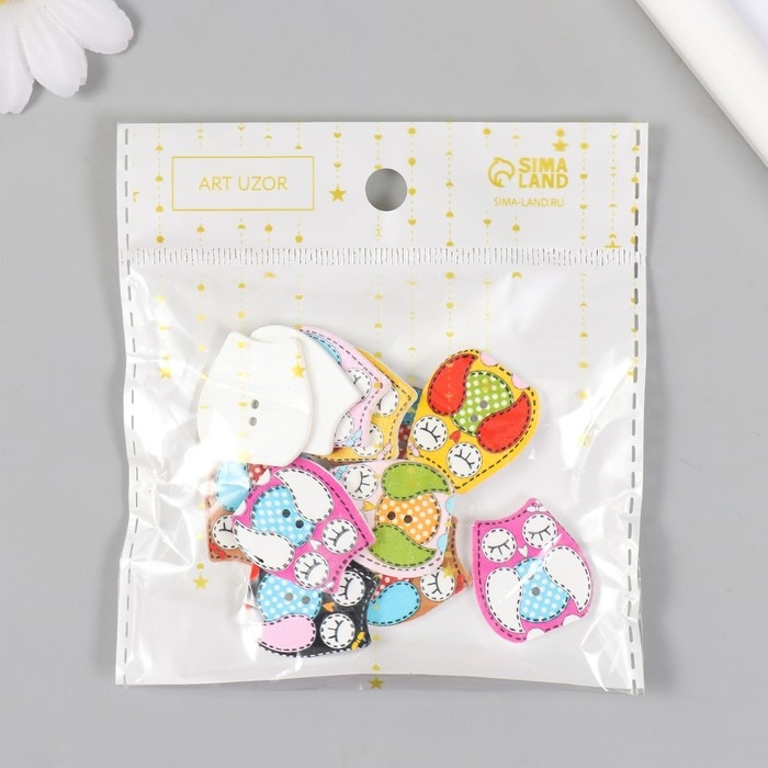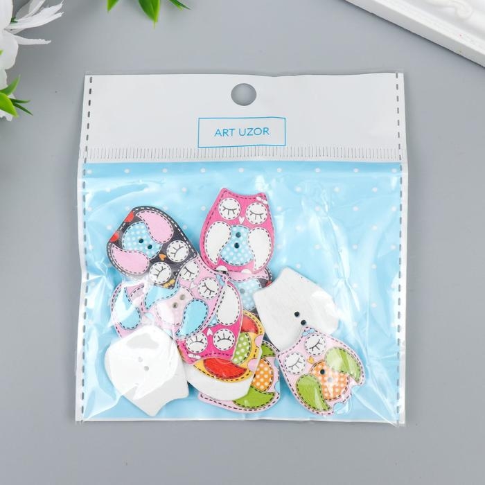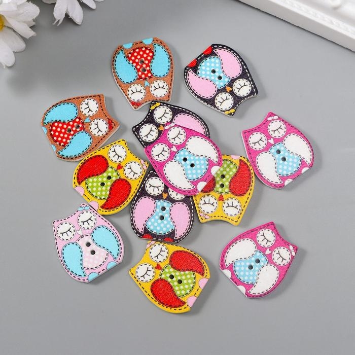 Набор пуговиц декоративных дерево "Спящая сова" (набор 12 шт) 2,3х2,5 см
