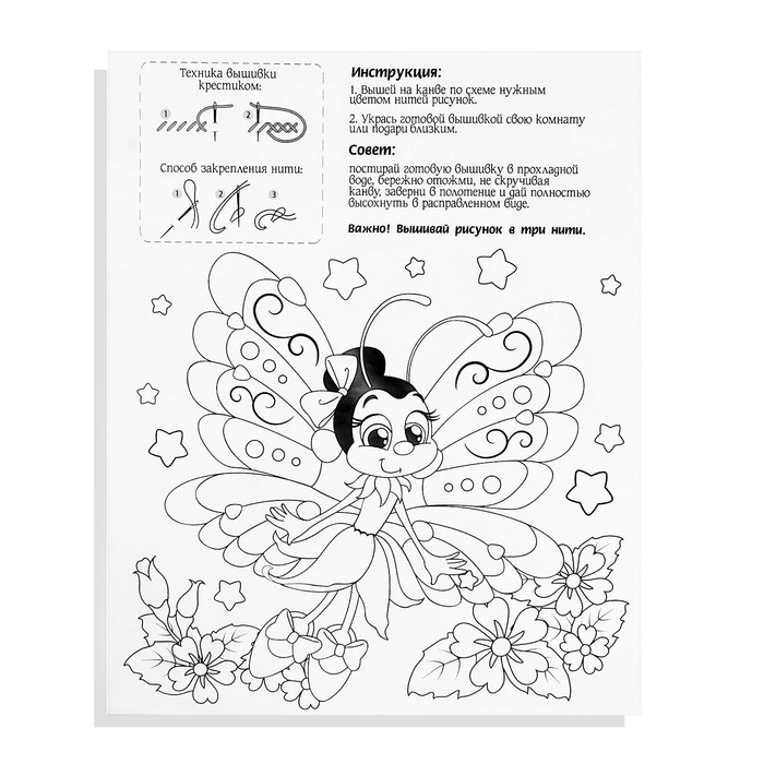 Небольшая вышивка с простым узором и цветной схемой — то, что нужно малышу, чтобы освоить новое хобби.