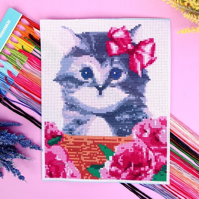 Вышивка крестиком «Котик в корзинке», набор для творчества, 25 х 20 см