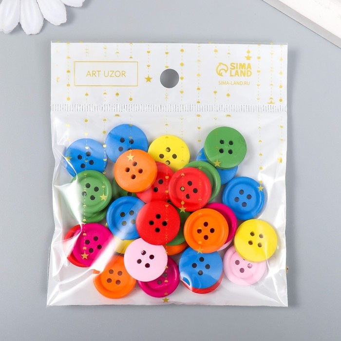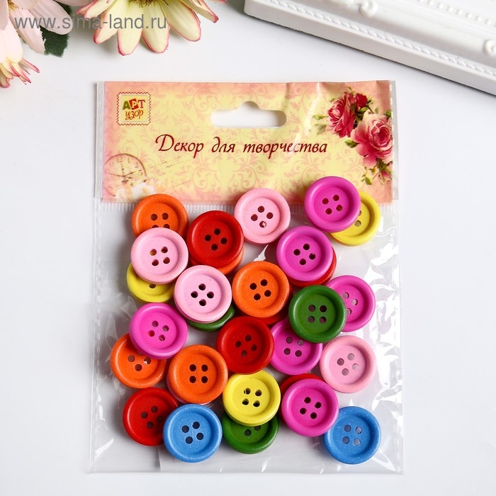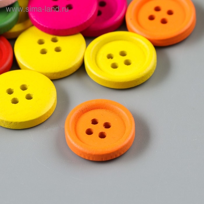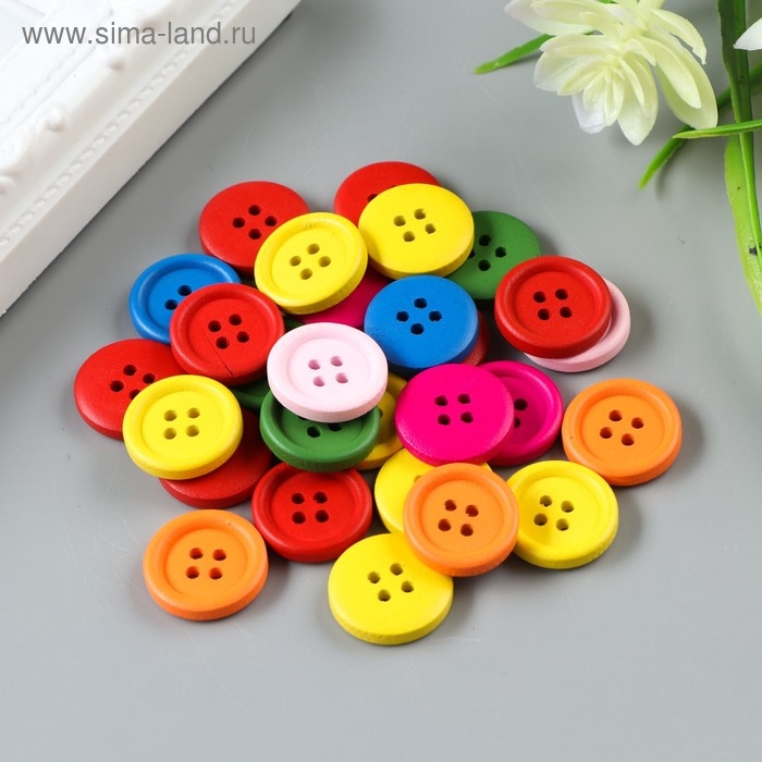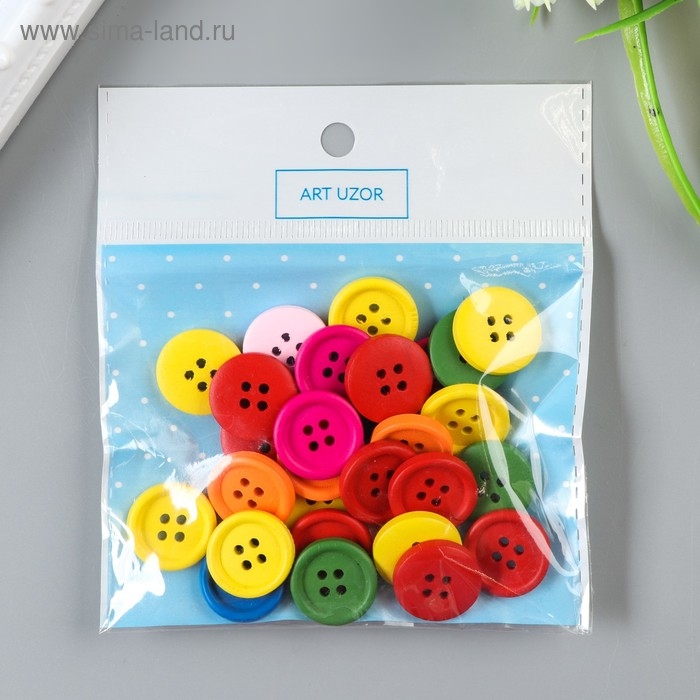 Набор пуговиц декоративных дерево "Яркие круглые" (набор 30 шт) 1,8х1,8 см