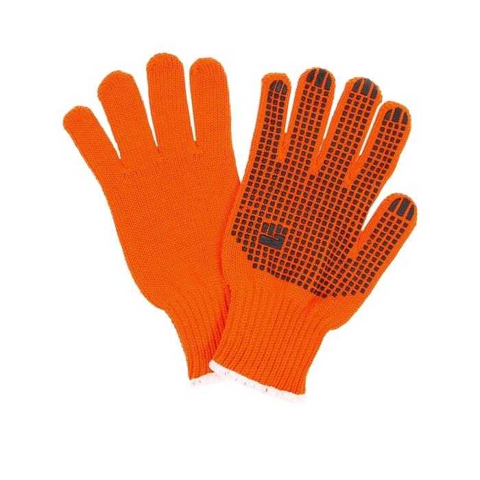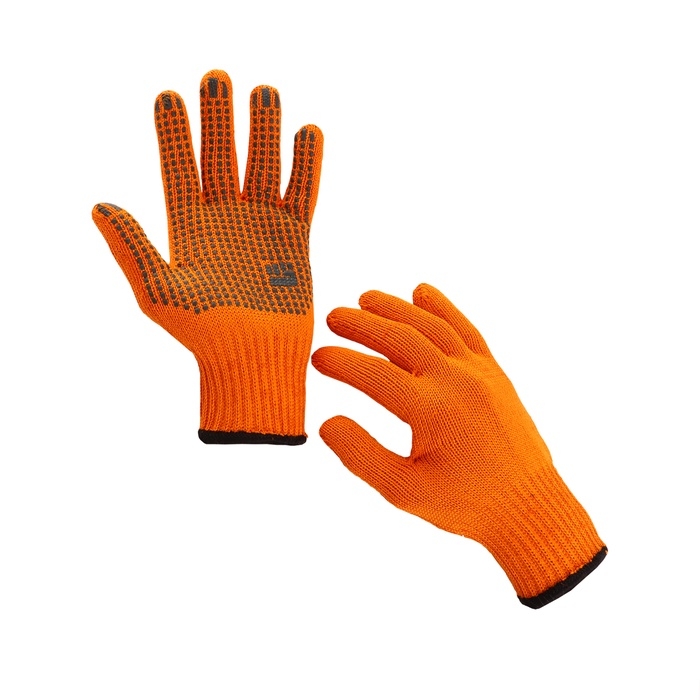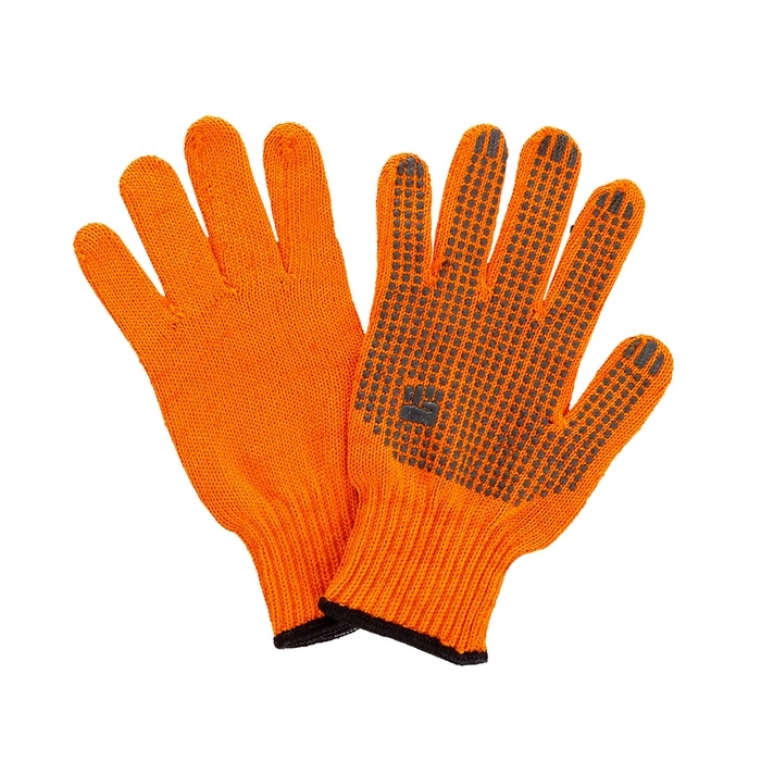 Перчатки садовые, хб, вязка 7 класс, 5 нитей, 3-слойные, размер 10, с ПВХ точками, оранжевые
