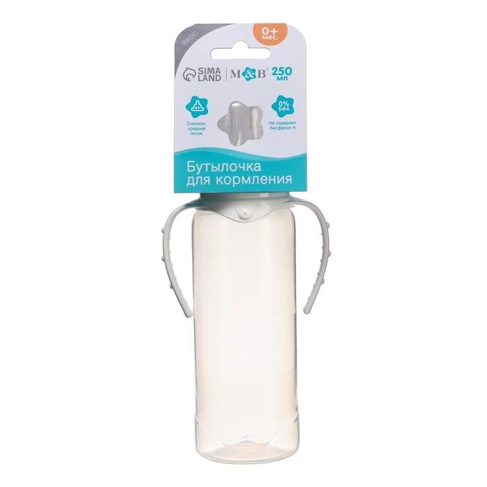 Бутылочка для кормления, классическое горло, с ручками, 250 мл., от 3 мес., цвет белый