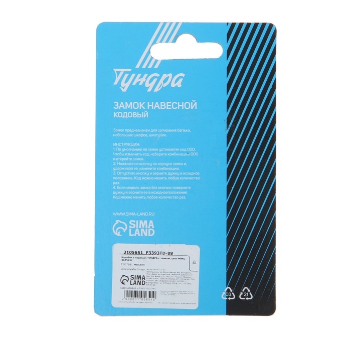 Карабин с кодовым ТУНДРА с замком, цвет МИКС
