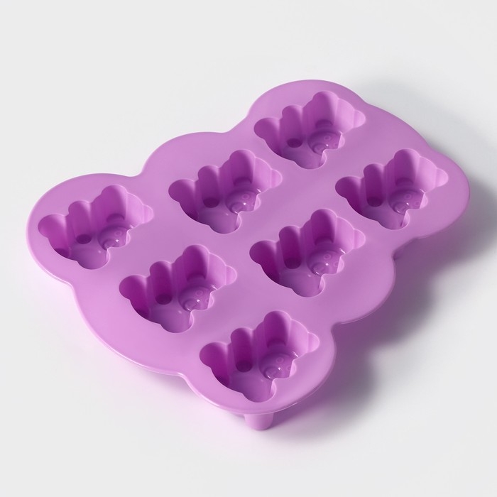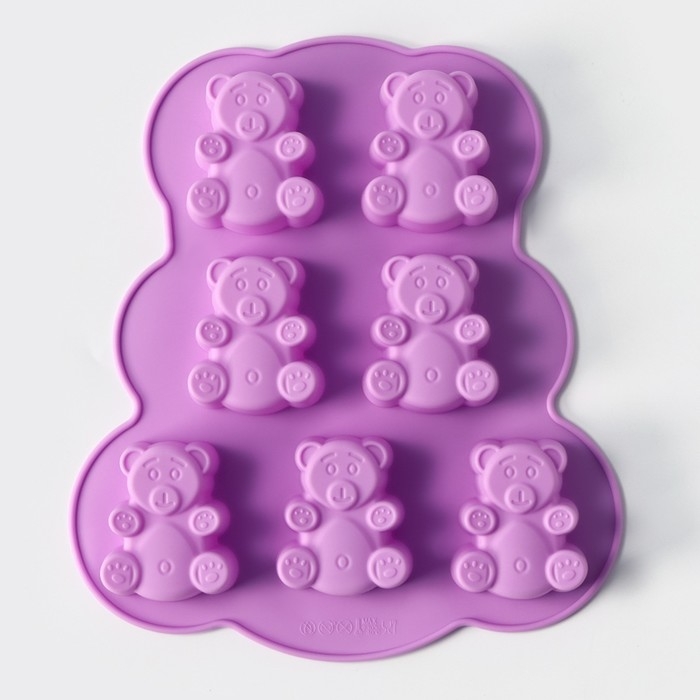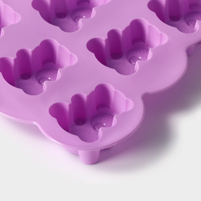 Форма для выпечки Доляна «Мишка», силикон, 27×24 см, 7 ячеек, цвет сиреневый